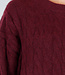 Dieser burgunderrote Strickpullover mit Zopfmuster ist ein echtes Must-have für Herbst und Winter. Der Pullover ist aus weichem Strickstoff mit klassischem Zopfmuster gefertigt. Das Modell hat einen Rundhalsausschnitt und lange Ärmel mit einer leicht oversized Passform, wodurch er besonders bequem zu tragen ist. Kombinieren Sie diesen warmen Pullover mit einer Jeans oder einem Rock für einen lässigen, aber stilvollen Look.