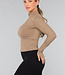Dieses langärmelige Sporttop ist aus einem glatten, atmungsaktiven Stretchmaterial gefertigt und verfügt über einen Reißverschluss auf der Vorderseite. Die Ärmel des Tops sind lang und haben Daumenlöcher am Ende. Dieses Top enthält keine Cups.