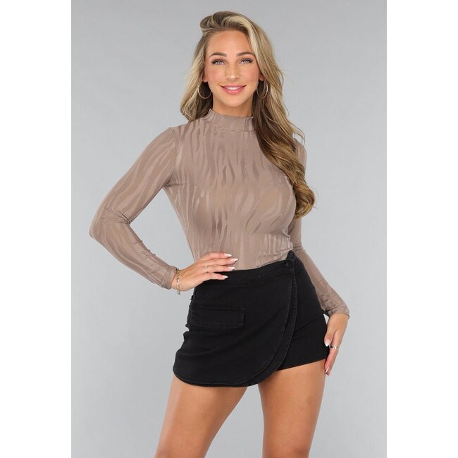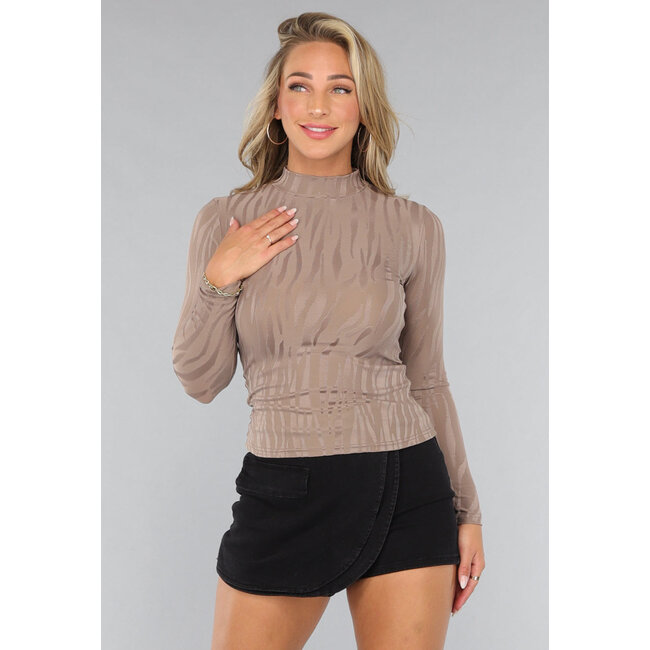 Dieses wunderschöne Oberteil ist mit einem Zebramuster bedruckt und hat lange Ärmel. Es hat einen hohen Ausschnitt mit einem kleinen Rollkragen für einen stilvollen Look. Das Oberteil ist mit einem Gummizug versehen, so dass es sich leicht an- und ausziehen lässt.