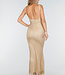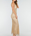 Dieses lange Kleid hat eine figurbetonte Passform mit geradem Ausschnitt und breiten Trägern. Der Stoff ist mit kleinen Strasssteinen besetzt, die für einen funkelnden Effekt sorgen. Auf der Rückseite hat das Kleid einen tiefen Ausschnitt. Das Material ist elastisch, sodass das Kleid bequem sitzt.