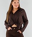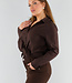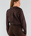 Diese dunkelbraune Bluse ist ein stilvolles Basic, das sich mühelos kombinieren lässt. Die Bluse ist aus einem glatten, geschmeidigen Stoff gefertigt, der sich angenehm auf der Haut anfühlt. Das Design hat einen klassischen Kragen, lange Ärmel mit Manschetten und eine gerade Passform, die für einen eleganten Look sorgt. Durch den Knopfverschluss vorne eignet sich die Bluse sowohl für Freizeit- als auch für Business-Looks.