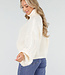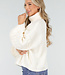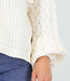 Dieser cremefarbene Rollkragenpullover ist aus grob gestricktem Material gefertigt und hat einen hohen Rollkragen. Die Ballonärmel sind mit einem deutlich sichtbaren Zopfmuster versehen, das einen Kontrast zum Rippstrick des Körpers bildet. Der Pullover hat eine lockere, gerade Passform und reicht bis zur Hüfte.