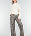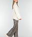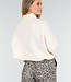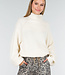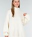 Dieser weiße Strickpullover hat eine weiche, gerippte Struktur, die ihm einen warmen und gemütlichen Charakter verleiht. Der Pullover hat einen hohen Kragen mit einer festen, fein gestrickten Verarbeitung und abgesenkten Schulternähten für eine entspannte Silhouette. Die Ärmel sind lang und weit, mit zusätzlichem Stoff am unteren Rand für einen lässigen Oversize-Effekt.