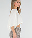 Cremefarbenes, kurz geschnittenes Oberteil mit luftiger und locker fallender Passform. Das Oberteil hat einen weiten Ausschnitt und elegante Fledermausärmel, die für einen bequemen Look sorgen. Durch das kurze Modell lässt sich das Oberteil perfekt mit einer Hose oder einem Rock mit hoher Taille kombinieren.