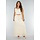 Zweiteiliges cremefarbenes Stretch-Set mit plissiertem Croptop und hochtailliertem Maxirock