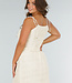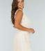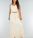Dieses cremefarbene zweiteilige Set besteht aus einem ärmellosen Oberteil und einem passenden Maxirock, die beide aus gesmoktem Stretchmaterial bestehen. Das Oberteil hat verstellbare, mit Perlen besetzte Träger, die an den Schultern gebunden werden und eine verstellbare Passform bieten. Der Maxirock ist hoch tailliert und wird in der Taille mit einem perlenbesetzten Kordelzug geschlossen. Beide sind gefüttert, damit sie nicht durchscheinen. Dank des dehnbaren Stoffes sitzt das Set bequem und passt sich dem Körper an. Perfekt für Ihren nächsten Urlaub oder einen Tag am Strand zu Hause.