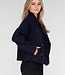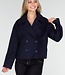 Diese dunkelblaue Jacke ist aus Wolloptik gefertigt und hat eine gerade Passform. Das Modell verfügt über eine doppelte Knopfleiste und einen breiten Reverskragen. Die Jacke hat zwei vertikale Eingrifftaschen auf der Vorderseite und ist vollständig gefüttert. Der Stoff fühlt sich fest an und behält seine Form gut, ideal für den Herbst.