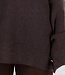 Dieser dunkelbraune Strickpullover hat eine weiche, gerippte Struktur, die ihm einen warmen und gemütlichen Charakter verleiht. Der Pullover hat einen hohen Kragen mit einer festen, fein gestrickten Verarbeitung und abgesenkten Schulternähten für eine entspannte Silhouette. Die Ärmel sind lang und weit, mit zusätzlichem Stoff am unteren Rand für einen lässigen Oversize-Effekt.