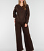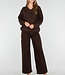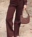 Diese dunkelbraune Jeans ist aus robustem Denim gefertigt und hat eine hohe Taille und gerade, weit ausgestellte Hosenbeine. Entlang der Seitennähte sind silberfarbene Nieten als auffälliges Detail eingearbeitet. Die Jeans hat einen klassischen Reißverschluss mit Knopf und verfügt über fünf Taschen und Gürtelschlaufen. Der Saum ist gerade mit einem gesteppten Saum verarbeitet.