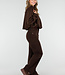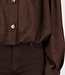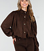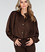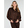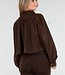 Diese dunkelbraune Jacke ist aus einem weichen Stoff in Wildlederoptik gefertigt. Das kurze Modell hat eine gerade Passform mit leicht strukturierten Schultern und dezenten Puffärmeln, die in breiten Manschetten mit Knopfverschluss enden. Die Jacke hat einen Stehkragen und eine glatte Innenseite für hohen Tragekomfort.