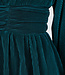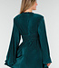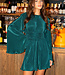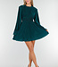 Dieses grüne Plisseekleid ist aus fein plissiertem Stretchstoff gefertigt, der eine dezente Struktur und schöne Bewegung erzeugt. Der hohe, runde Ausschnitt geht in ein locker fallendes Oberteil mit langen, weit ausgestellten Ärmeln über, die sich locker mitbewegen. An der Taille ist das Kleid mit einem breiten, superelastischen Rüschenbesatz mit präzise platzierten Falten versehen, die für eine schmeichelhafte Silhouette sorgen. Der Rock fällt in einer leichten A-Linie. Die Rückseite ist mit einem diskreten verdeckten Reißverschluss versehen. Ein raffiniertes Design für Abendlooks und besondere Anlässe.