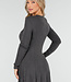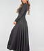 Dieses Maxikleid in Dunkelgrau ist aus einem bequemen Stretchstoff gefertigt, der sich schön an den Körper anschmiegt. Das Modell hat einen Rundhalsausschnitt, lange Ärmel und eine elegante Passform. Dank des geschmeidigen Stoffes fühlt sich das Kleid weich und bequem an.