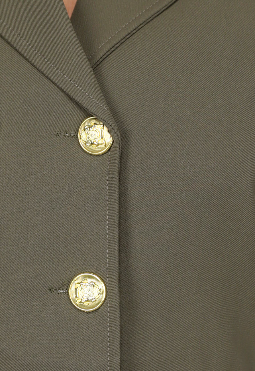 2-teiliges Khaki-Blazer-Skort-Set mit goldenen Navy-Knöpfen
