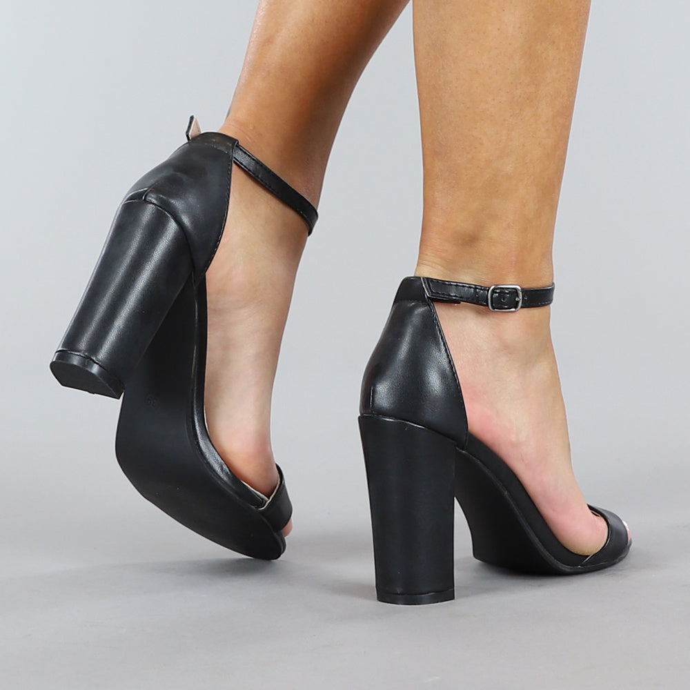 Diese Sandale ist in Lederoptik gehalten. Sie hat einen stabilen Blockabsatz und einen Riemen, der über die Zehen verläuft. Die Ferse der Sandale ist geschlossen und die Sandalette kann mit dem verstellbaren Schnallenverschluss am Knöchelriemen geschlossen werden.