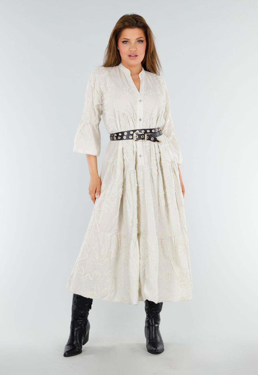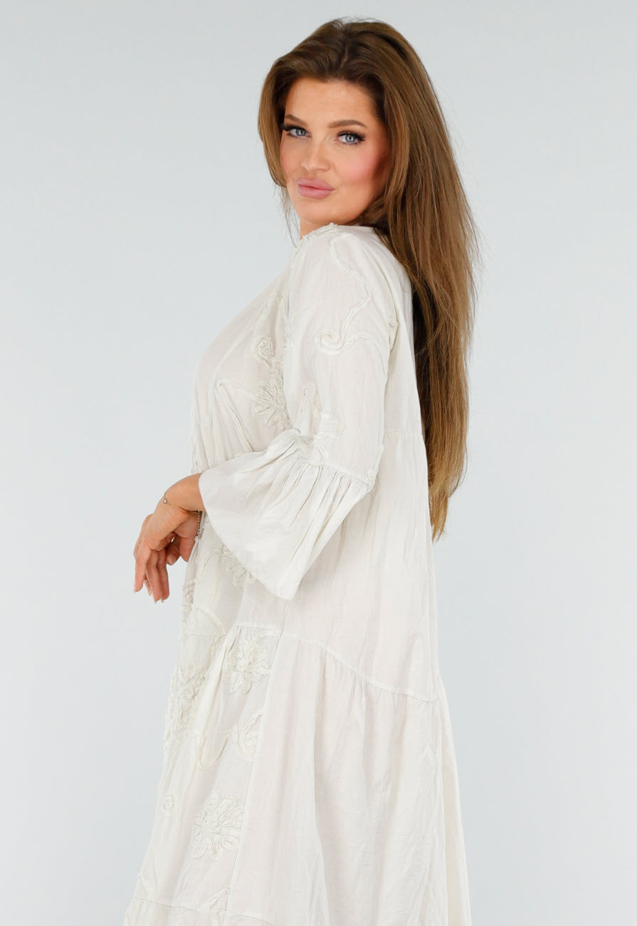 NEW110625 Beige Maxi-Jurk met Borduursels Größe OS