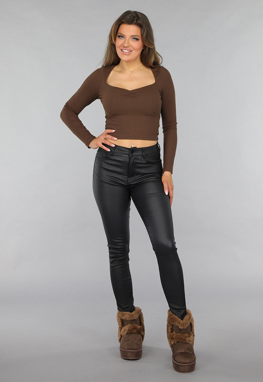 OP=OP.40.NL Bruine Ribstof Top met Scrunch Hals Größe S