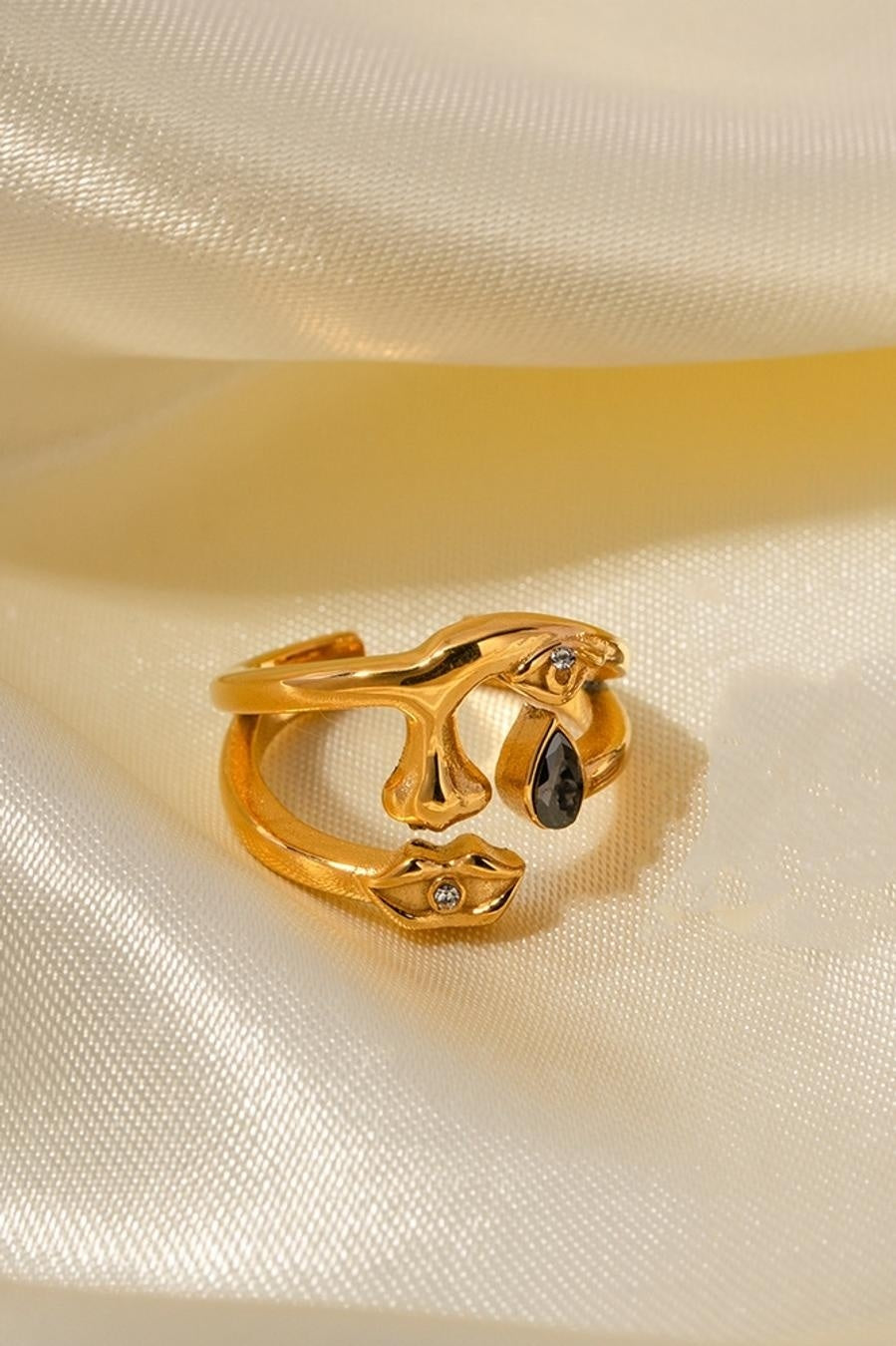 Dieser Ring hat das Design eines Gesichtes und ist aus rostfreiem Stahl, so dass er auch nicht abfärbt. So Duschen etc. ist kein Problem mit diesem Ring.