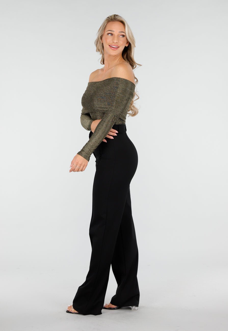 OP=OP.AV.12 Zwarte Stretch Off Shoulder Glitter Top Größe S