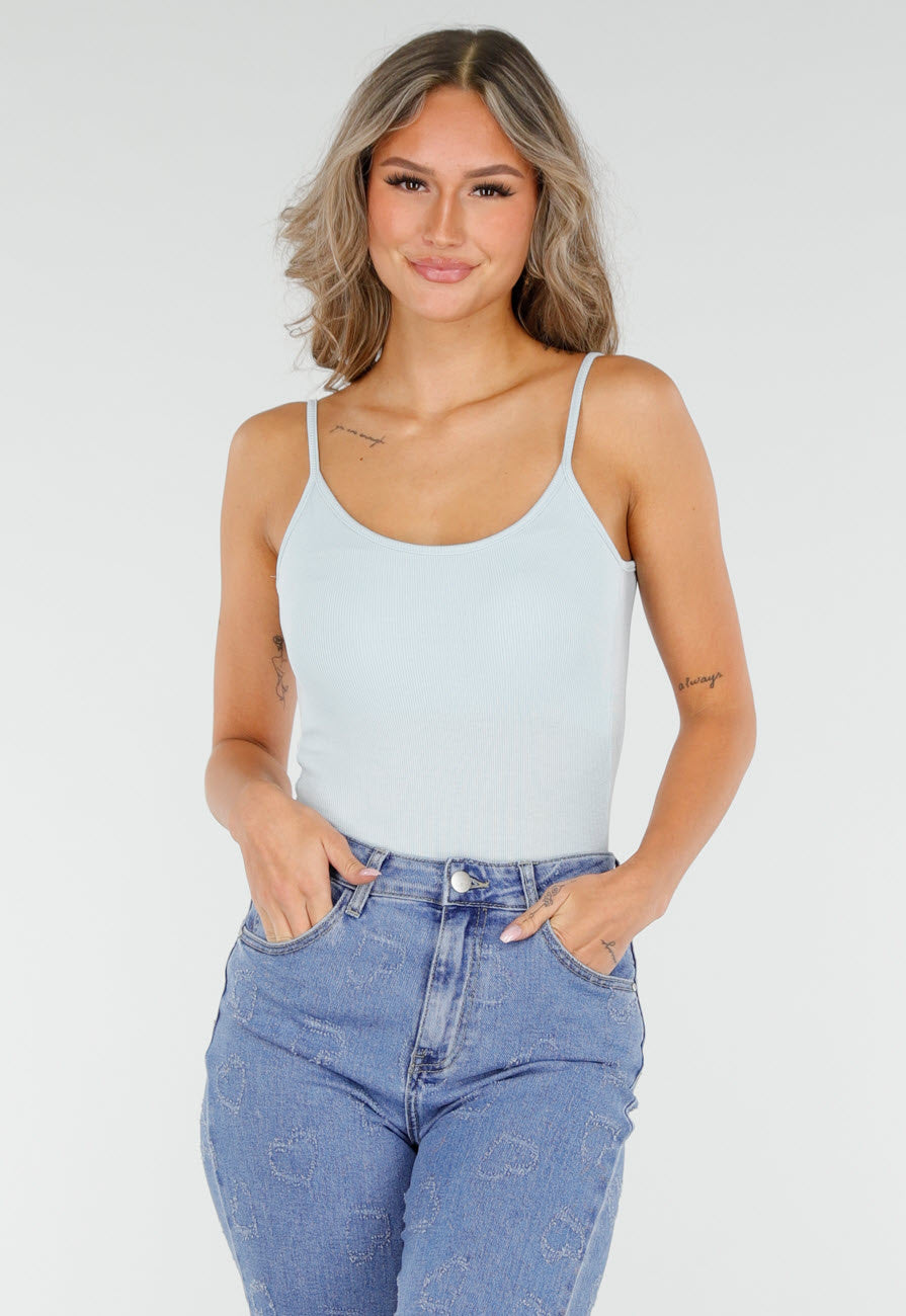 Hellblauer Rippenbodysuit