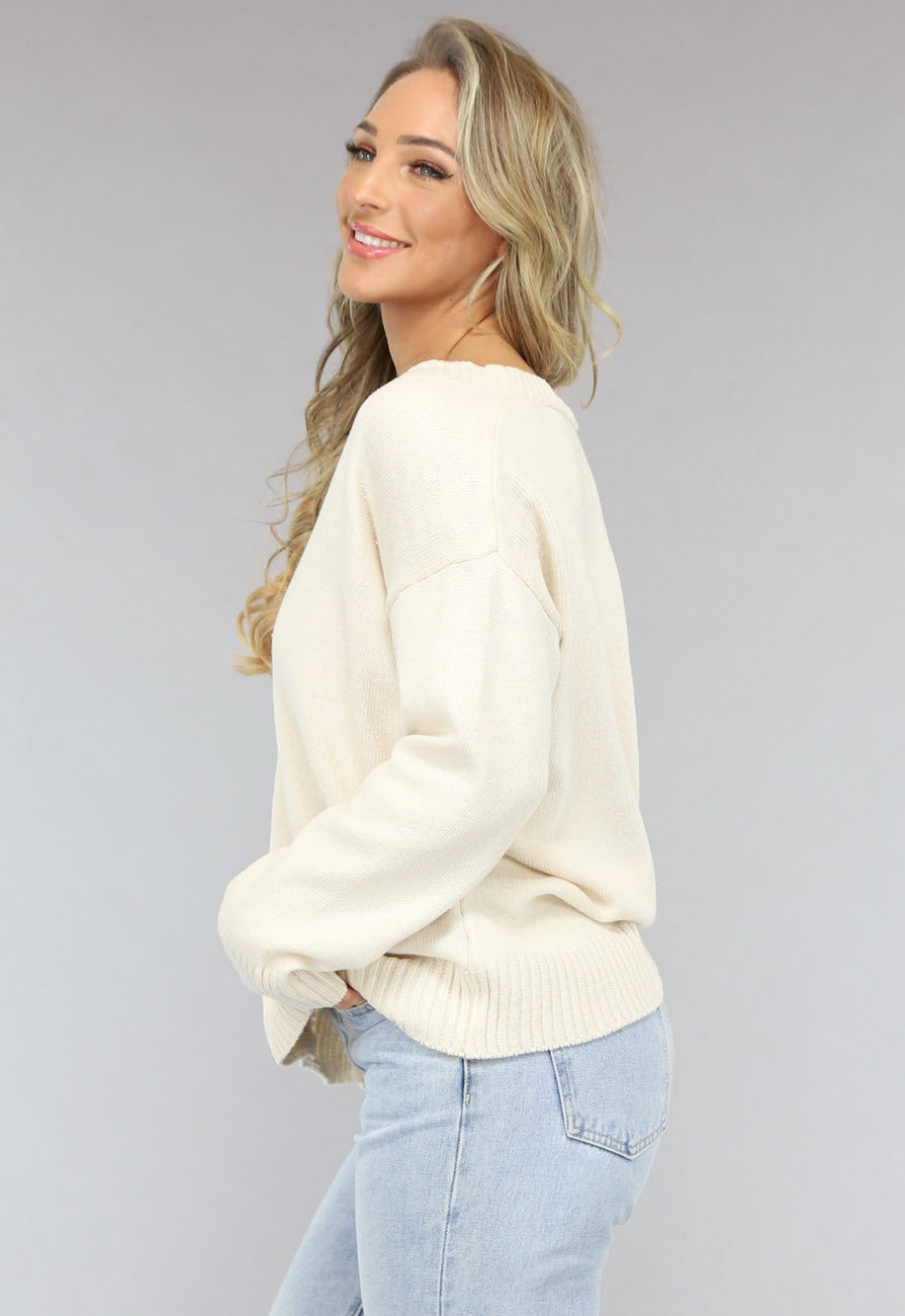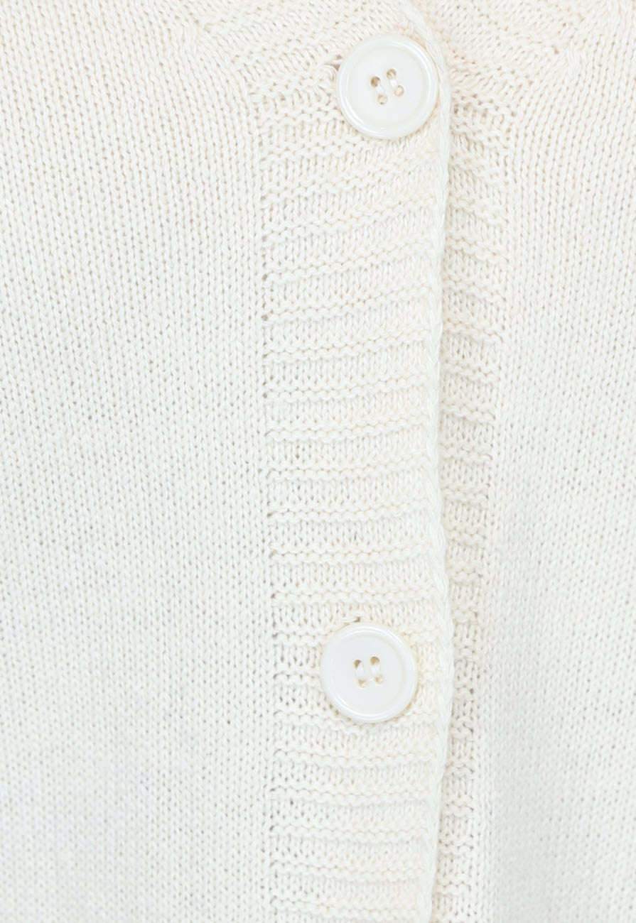 Kurze beigefarbene Feinstrick-Strickjacke