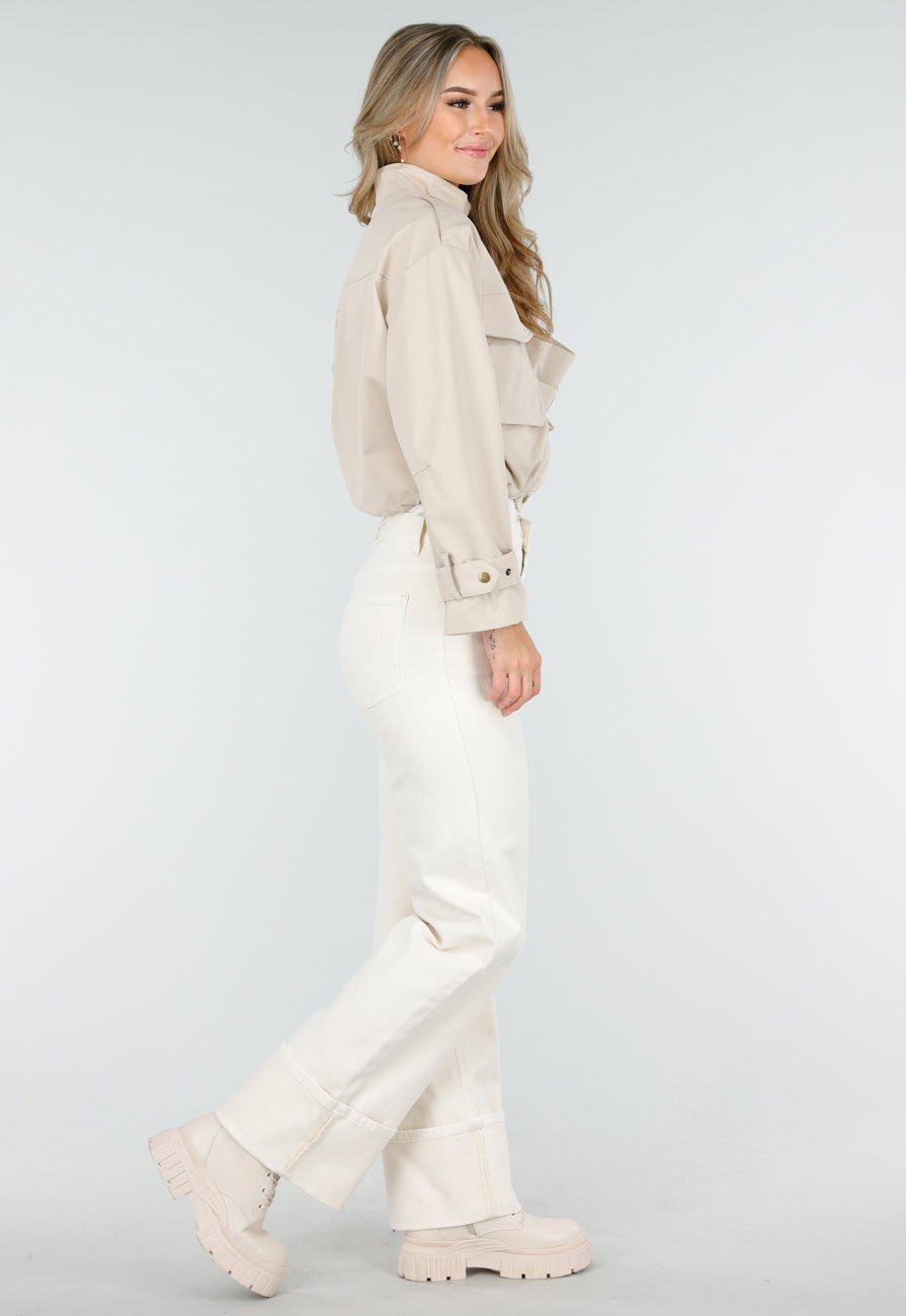NEW240925 Beige Cropped Jas met Zakdetails Größe S