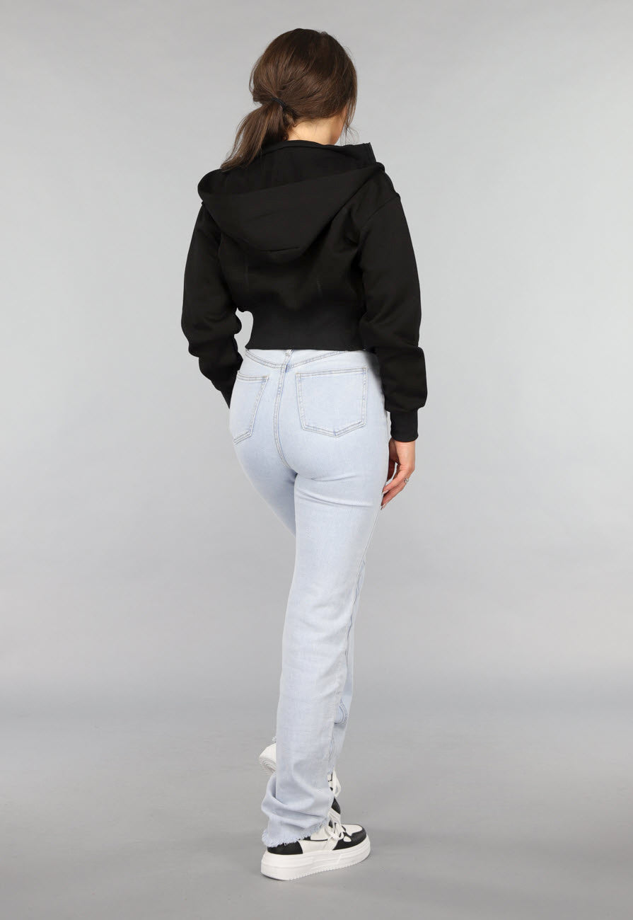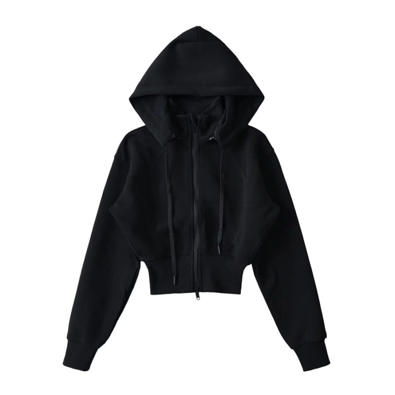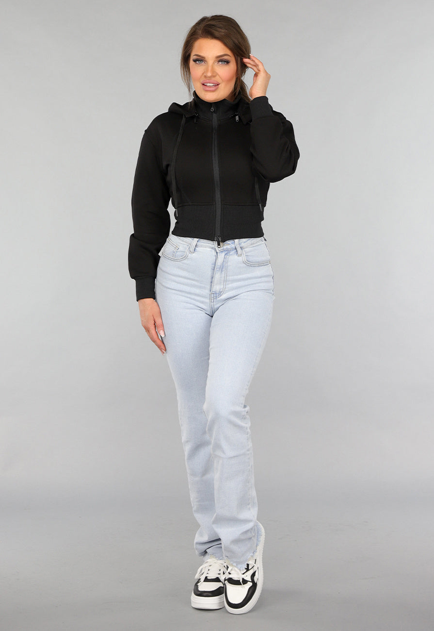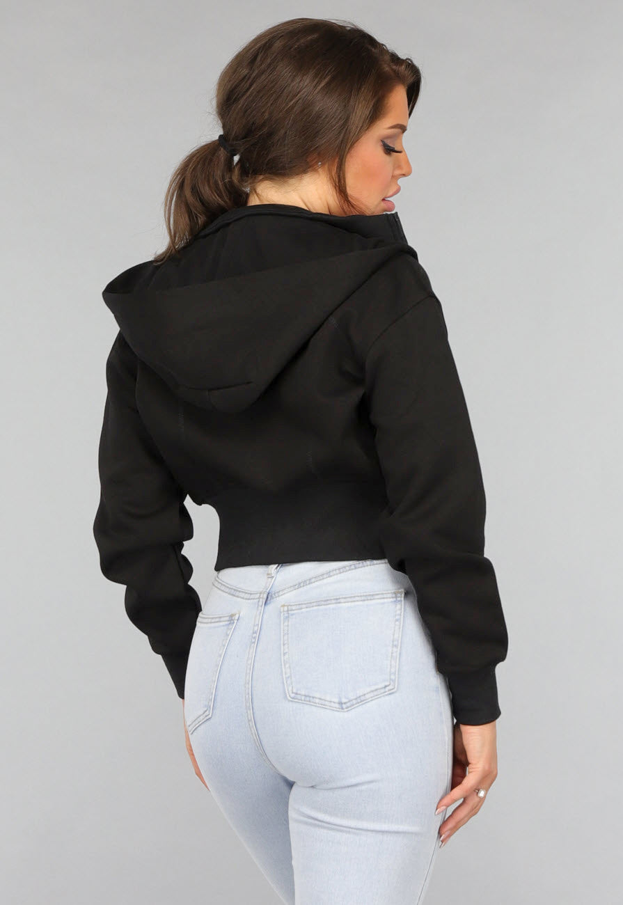 Schwarzer kurzer Cardigan mit abnehmbarer Kapuze