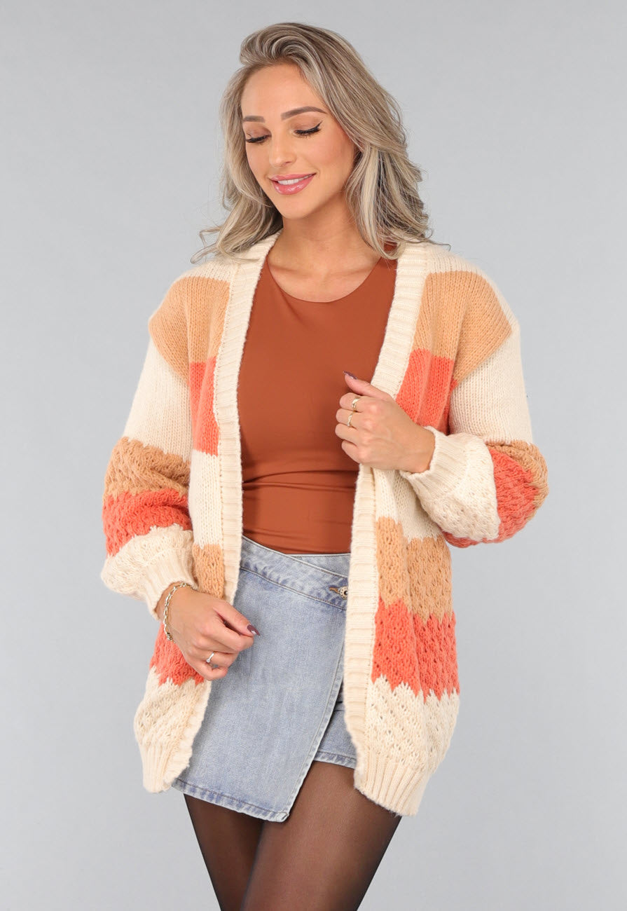 Diese Strickjacke ist aus einem herrlich weichen Strickstoff gefertigt und mit einem farbigen Streifenmuster versehen.