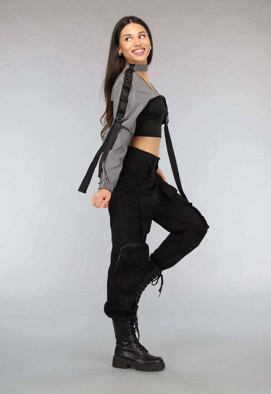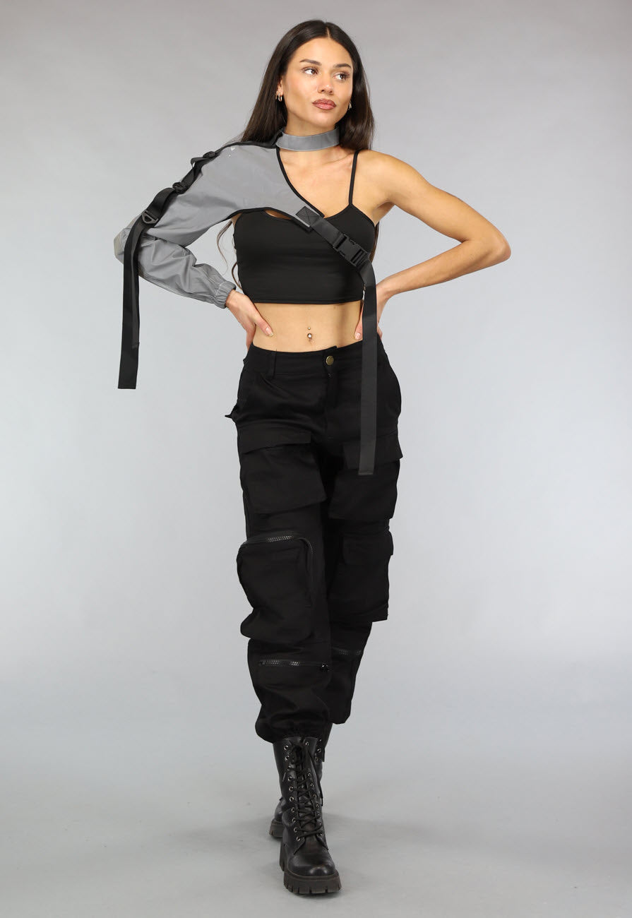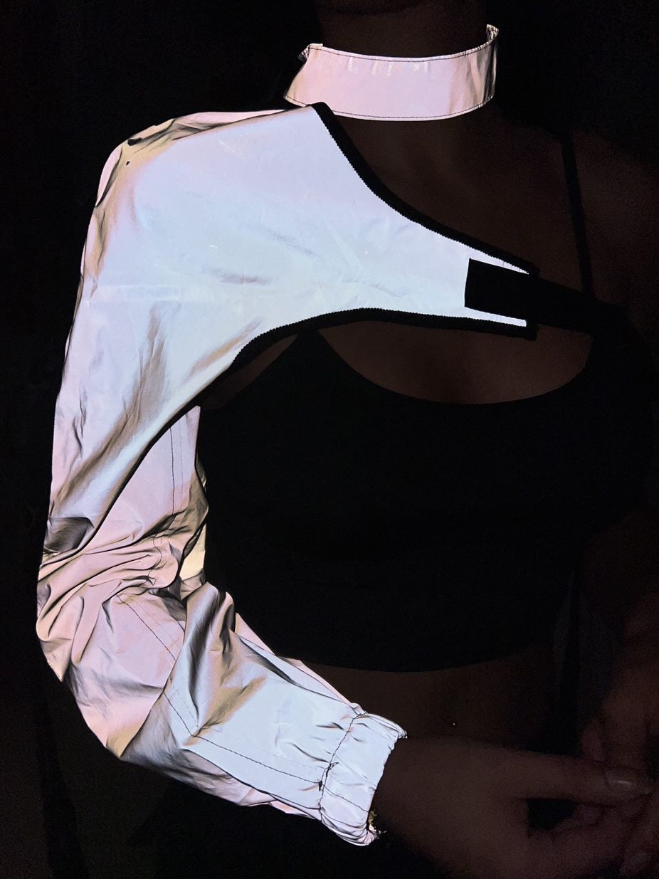 NEW2911 Reflecterende One Sleeve Top met Choker Größe OS