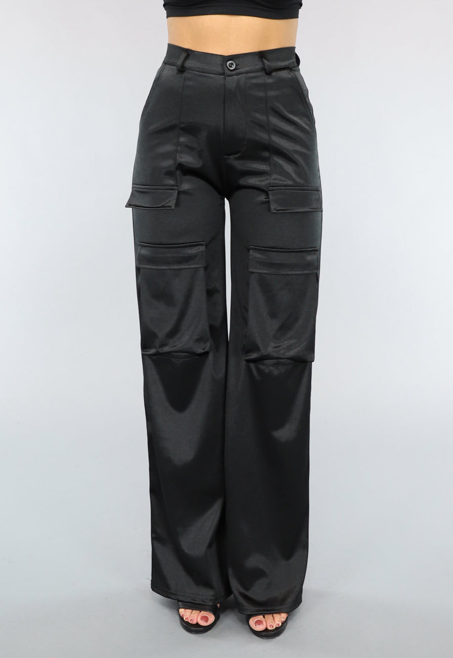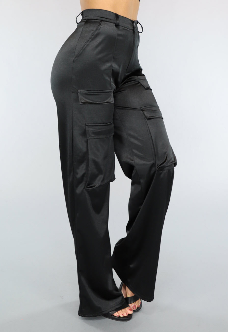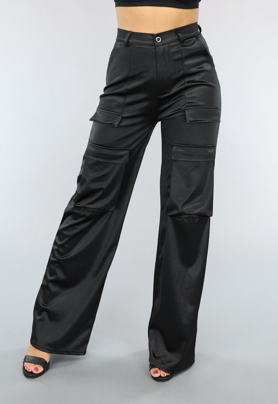 NEW1402 Zwarte Cargo in Satijnen Stof Größe S