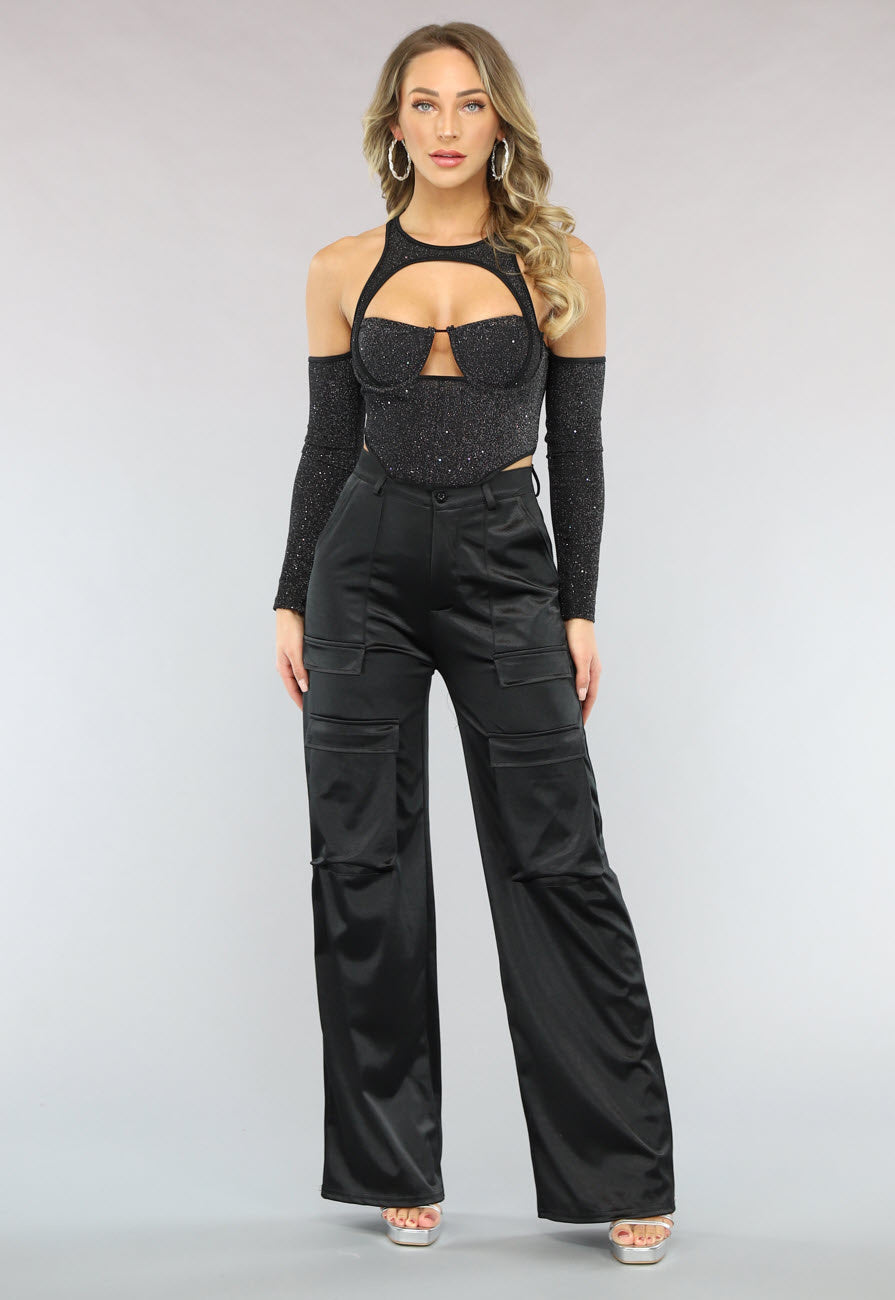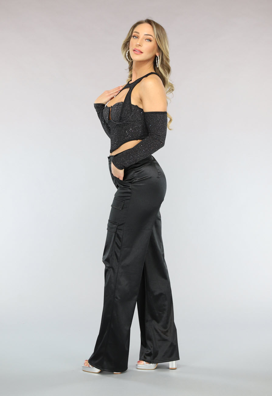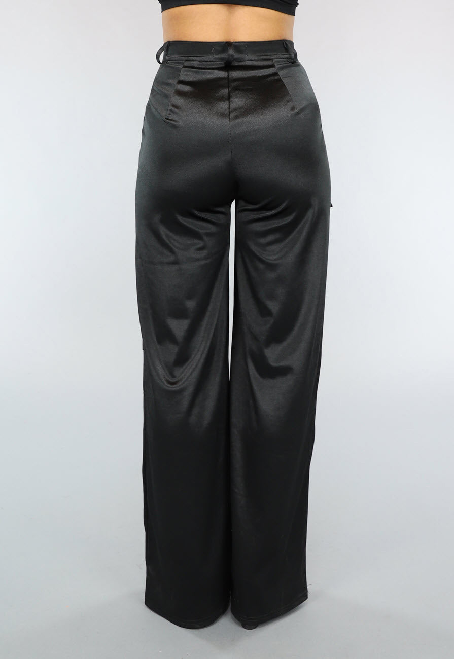 NEW1402 Zwarte Cargo in Satijnen Stof Größe S