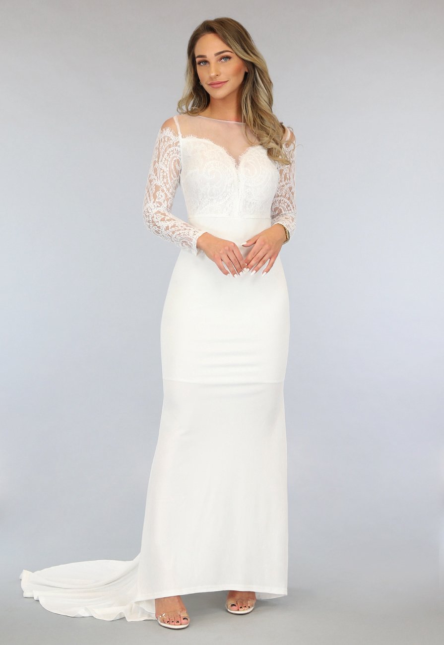 Weißes Galakleid mit Spitzenärmeln