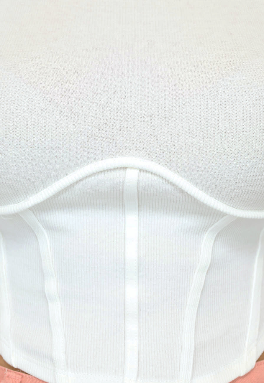 Weißes langärmeliges Top mit Korsett-Detail