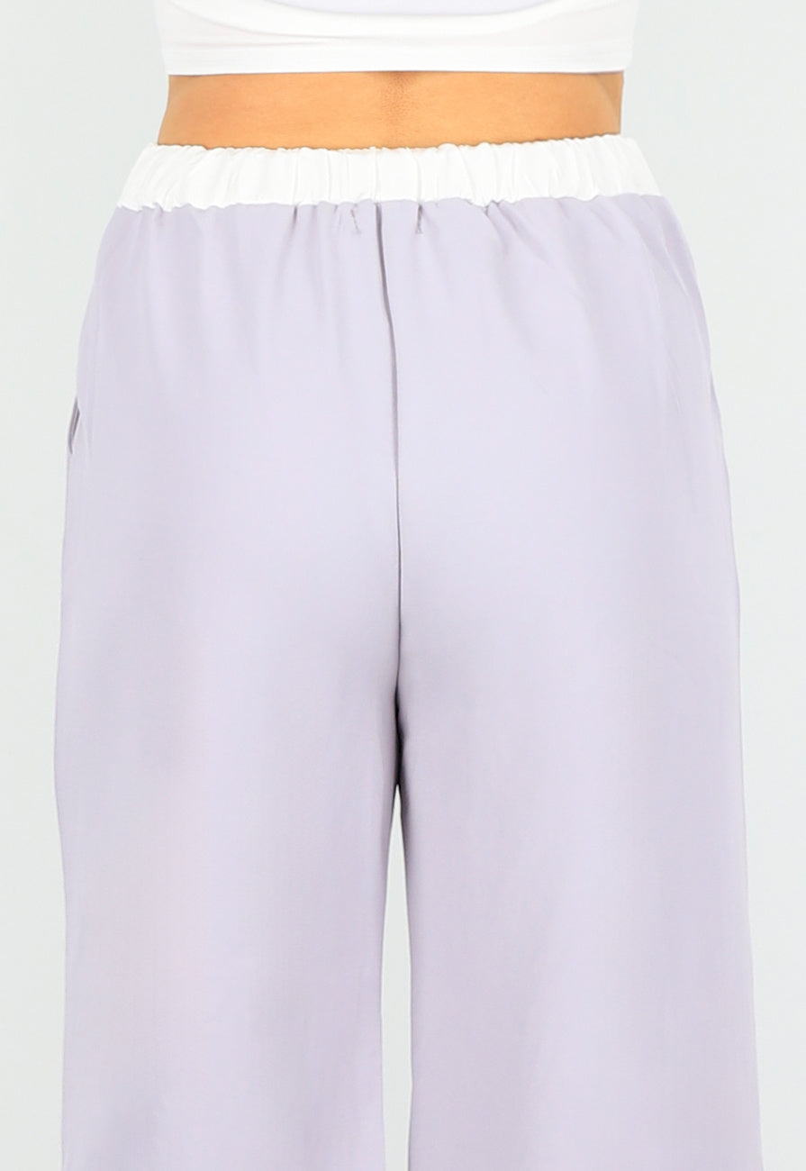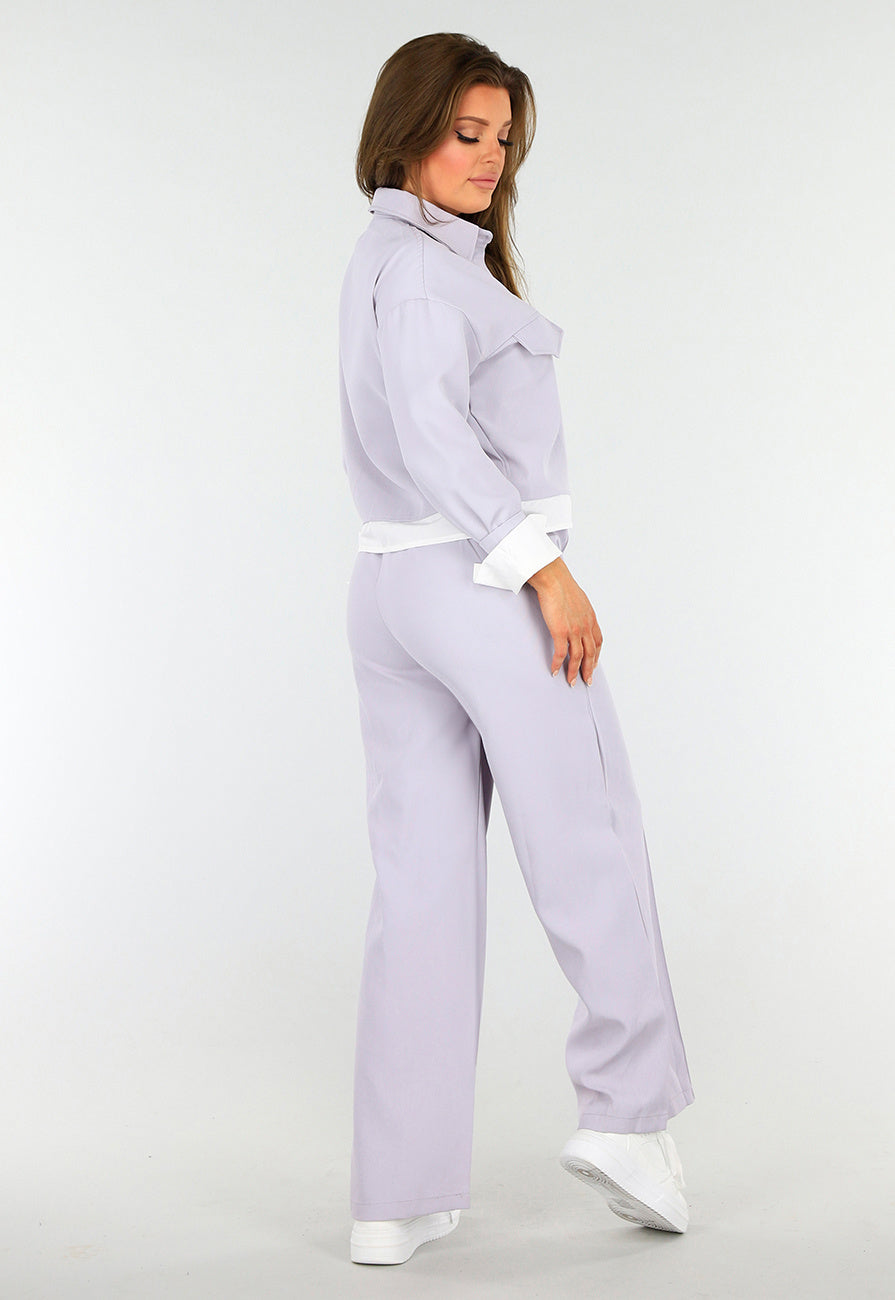 Zweiteiliges lila Set mit Jacke und Hose mit hoher Taille