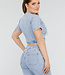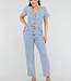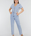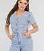 Denim-Jumpsuit mit Ausschnitten, kurzen Ärmeln und Knöpfen
