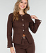 Dieser braune Denim-Blazer ist aus robustem Jeansstoff gefertigt und hat eine taillierte Passform mit einem dezenten Schößchen am Saum. Der Blazer hat lange Ärmel, einen Rundhalsausschnitt und goldfarbene Knöpfe auf der Vorderseite. Die sichtbaren Nähte und zwei dekorative Seitentaschen sorgen für einen klassischen Denim-Look. Auf der Rückseite befindet sich ein kleiner Schlitz für zusätzliche Bewegungsfreiheit. Kombinieren Sie ihn mit der passenden Hose zu einem kompletten Set.
