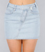 Dieser Jeansrock ist hoch tailliert und hat zwei Seitentaschen auf der Vorderseite. Er hat einen Reißverschluss mit einem diagonalen, asymmetrischen Knopfverschluss. Der Rock hat außerdem zwei Gesäßtaschen und fünf Gürtelschlaufen. Der Rock hat einen hohen Stretchanteil. Dieser süße Rock ist perfekt für Sommertage!