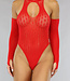 Dieser Body hat ein Netzmuster und einen runden hohen Ausschnitt. Die Seiten des Bodys sind mit einem Fischnetzmuster versehen. Der Body hat einen ovalen Ausschnitt an der Brust und am Rücken. Das Set wird mit losen Ärmeln geliefert, die ebenfalls Netzdetails an den Seiten haben. Das Set ist mit einem lustigen Tupfenmuster versehen. Der Body hat unten keinen Verschluss, lässt sich aber dank des Stretchanteils leicht an- und ausziehen.