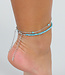 Doppeltes Knöchelarmband mit Silberkette und blauen Perlenakzenten