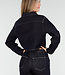 Diese dunkelblaue Jeansbluse ist ein kurzes Modell mit langen Ärmeln. Das Design wird vorne mit Knöpfen geschlossen und hat einen klassischen Kragen. Auf der Brust befindet sich eine aufgesetzte Tasche, die mit kontrastierenden Nähten verziert ist. Die Bluse hat einen geraden Saum, der knapp über der Taille endet.