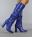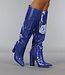 Dunkelblauer Croco-Stiefel mit spitzer Nase