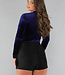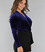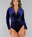 Dieser Bodysuit ist aus einem dehnbaren Samtstoff gefertigt. Er hat eine große Klappe und lange Ärmel. Der große Volant sorgt für ein tiefes Dekolleté. Die langen Ärmel sind tailliert. Der Body hat einen Hakenverschluss, der aus zwei Haken besteht, die man in drei Positionen einstellen kann.