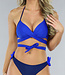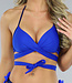 Dieses dunkelblaue Bikinioberteil hat einen Push-up-Effekt. Dieses Bikinioberteil hat ein Wickeloberteil, das Sie selbst binden können und enthält Bikini-Pads. Der Bikini enthält auch einen Bügel, so dass Ihre Brüste gut unterstützt werden. Kombinierbar mit dem passenden Bikini-Unterteil.
