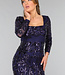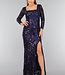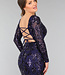 Dieses wunderschöne Galakleid ist mit Pailletten besetzt, die in einem dekorativen Muster über das Kleid laufen. Es hat lange Ärmel und einen quadratischen Ausschnitt. Auf der Rückseite hat das Kleid einen schönen Schnürverschluss, mit dem Sie das Kleid selbst anpassen können. Das Kleid hat eine gute Passform und fällt unten etwas weiter. Dieses Kleid hat ein Unterkleid, so dass man die Pailletten nicht spürt.