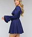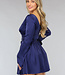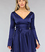 Dieses Kleid ist aus einem Satinstoff gefertigt und hat einen tiefen V-Ausschnitt. Das Kleid hat einen Skater-Stil und verfügt über lange Ärmel, die leicht ausgestellt sind, die Ärmel haben auch kleine Schlitze. Außerdem hat das Kleid eine lange Schleife, die Sie um Ihre Taille binden können. Außerdem verfügt das Kleid über einen Blindreißverschluss an der Seite.