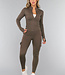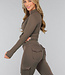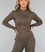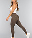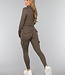 Dieses Sportset besteht aus einer Sportweste und einer Sportleggings. Beide Teile sind aus einem glatten, atmungsaktiven Stretch-Stoff gefertigt und eignen sich daher perfekt für den Sport. Die Ärmel des Oberteils sind lang und haben Daumenlöcher am Ende. Die Vorderseite ist mit einem Reißverschluss versehen. Die Leggings haben eine hohe Taille und sind mit Taschen an den Oberschenkeln und auf der Rückseite ausgestattet.