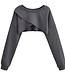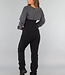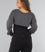 Dieser Pullover ist tailliert geschnitten und hat lange Ärmel, die am Ende einen verbindenden Saum haben. Er hat einen einzigartigen Wickel-Look. Der Pullover ist aus einem weichen, dicken Stretch-Stoff gefertigt und hat einen weiten Rundhalsausschnitt.