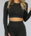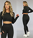 Schwarzes Sporttop in Marmoroptik mit Pushern