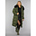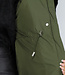 Dieser Wintermantel hat ein langes, übergroßes Design und hat lange Ärmel mit einem Band am Ende mit Druckknöpfen. Diese Bänder sorgen dafür, dass der Wind nicht durch die Ärmel dringen kann. Die Vorderseite hat einen Reißverschluss mit einer Klappe darüber. Diese Klappe wird mit Druckknöpfen geschlossen und verhindert ebenfalls das Eindringen von Wind. Sie hat eine Kapuze mit schwarzem Kunstpelzkragen, dessen Pelzkragen mit Knöpfen abnehmbar ist. Die Jacke hat zwei schräge Taschen und in der Taille befindet sich auf jeder Seite ein elastischer Kordelzug, den man bei Bedarf enger ziehen kann, um mehr Taille zu schaffen.