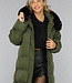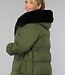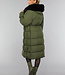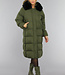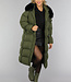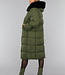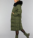 Dunkelgrüne Oversized-Pufferjacke mit Pelzkragen