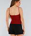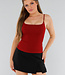 Dieses Basic-Top aus festem Stretch-Stoff hat einen quadratischen Ausschnitt mit dünnen Spaghetti-Trägern. Die herausnehmbaren festen Cups bieten Halt und Form ohne Bügel. Die dickere Qualität sorgt dafür, dass das Material nicht durchscheint und das Oberteil an seinem Platz bleibt. Das Modell hat eine eng anliegende Passform, die dem Körper folgt. Ideal, um es locker zu tragen oder unter einem schönen Blazer zu kombinieren.
